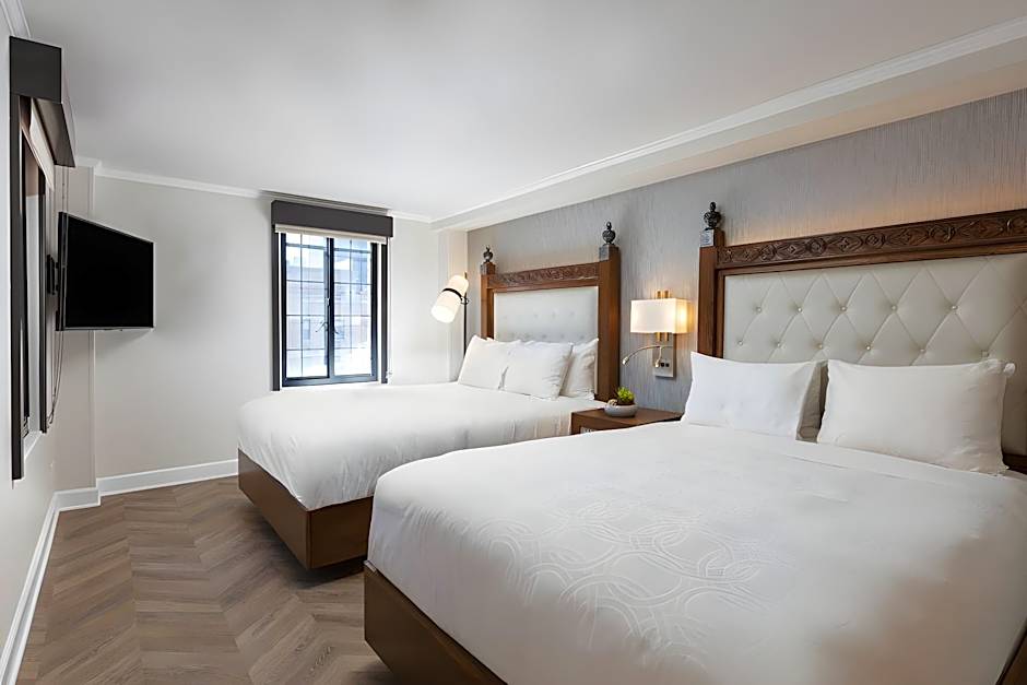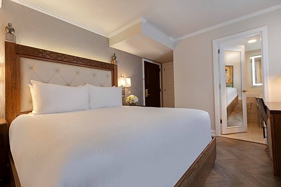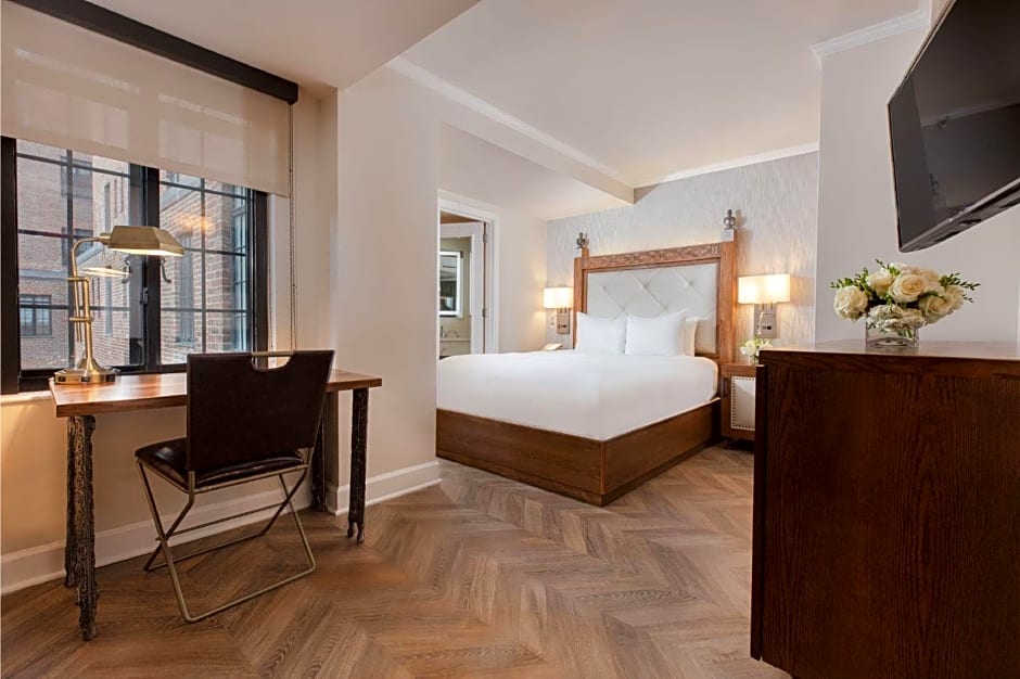 Luxe One Bedroom Tudor City Suite is 420 square feet and includes a king-size bed 150-183 width plus satellite tv and is Wheelchair-accessible.